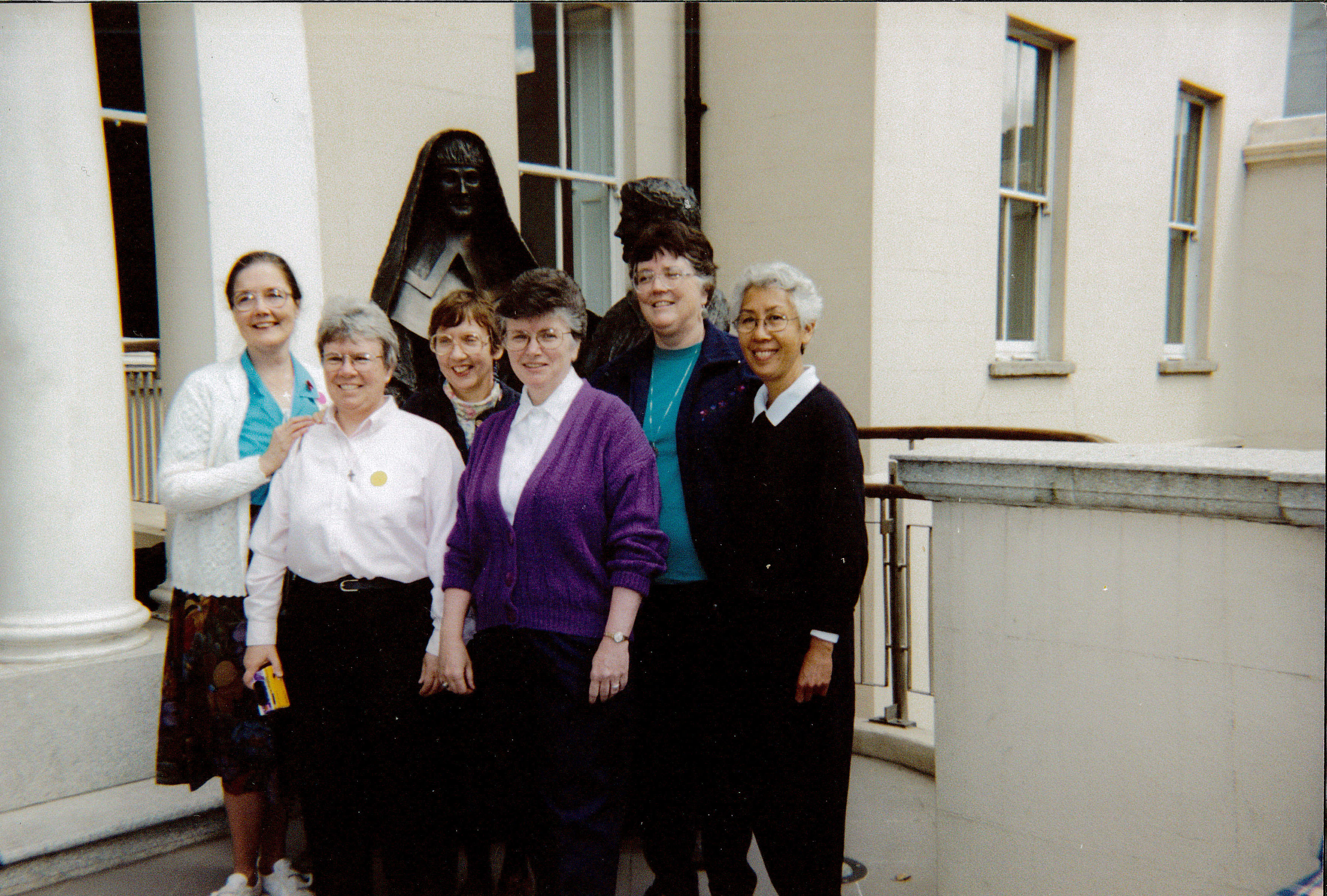 Descripción: Seis participantes estadounidenses en la Conferencia sobre Justicia Internacional en Dublín, Irlanda. De izquierda a derecha: Hermanas Mary Schmuck, Dale Jarvis, Karen Donahue, Patricia Hartigan, Maureen Hally, y Marie Chin.