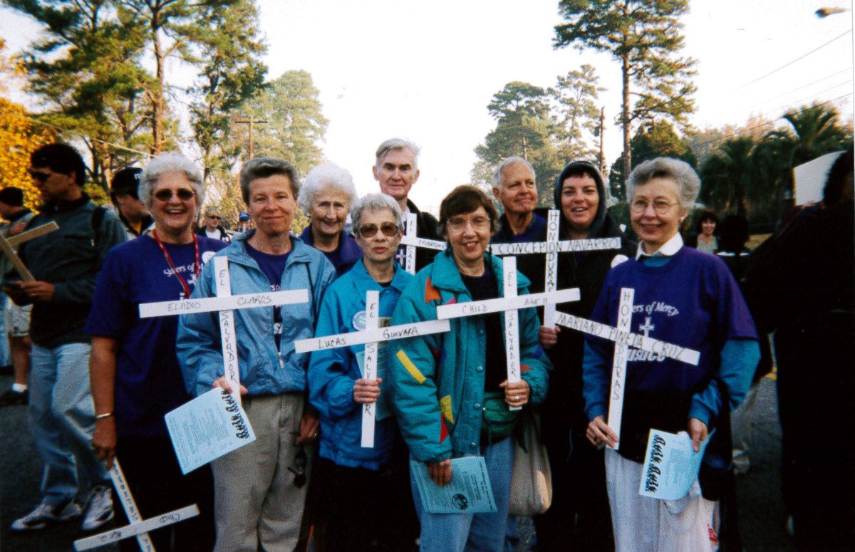 Descripción: Hermanas y asociadas/os de las Comunidades Regionales de Baltimore, Chicago y Providence protestan en SOA Watch.